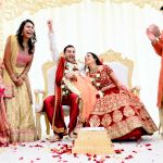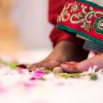 This part of the ceremony is the exciting highlight for the guests, who witness the union of the bride and groom as they circumambulate God in the form of the sacred fire. Firstly the bride and groom perform aśmā krāmana or shilarohan, whereby the bride places her right foot on a sacred stone, whilst the groom prays that the bride remains fixed and strong in her devotion to God. It also symbolises her courage, determination and support in her married life to the groom.